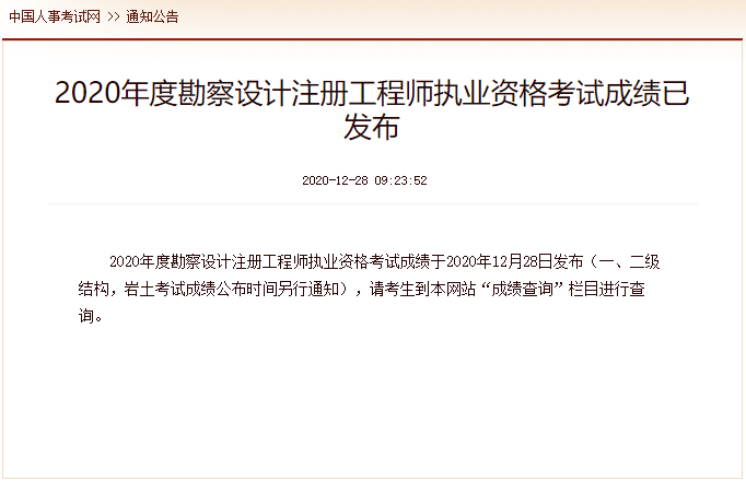 2020年度勘察设计注册工程师执业资格考试成绩已发布