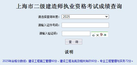 上海市2025年二建考试成绩查询入口: