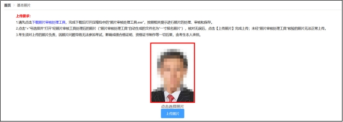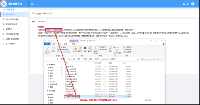 (1)认真阅读上传照片要求,下载“照片审核处理工具”,解压后点击“照片审核处理工具.exe”。