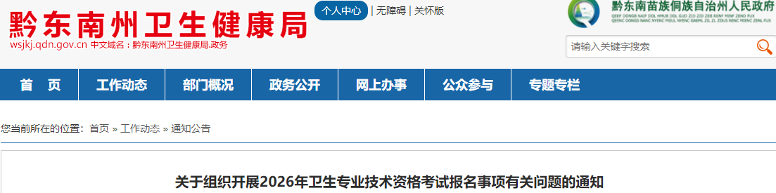 关于做好贵州黔东南组织开展2026年卫生专业技术资格考试报名事项有关问题的通知