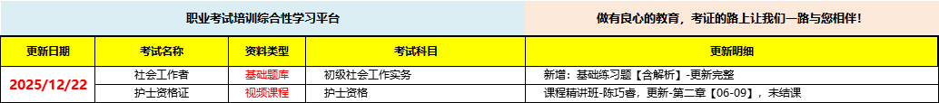职业考试培训综合性学习平台,做有良心的教育,考证路上让我们一路与您相伴!