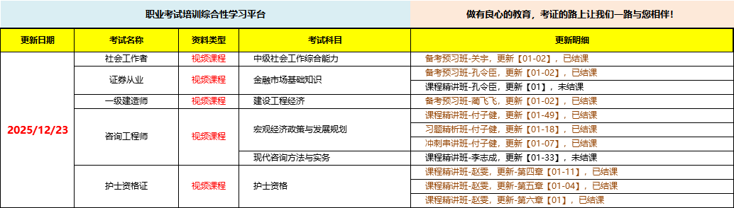 职业考试培训综合性学习平台,做有良心的教育,考证路上让我们一路与您相伴!
