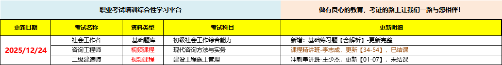 职业考试培训综合性学习平台,做有良心的教育,考证路上让我们一路与您相伴!
