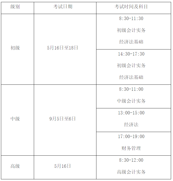 4.2026年5月16日至18日,组织初级会计资格考试,5月16日组织高级会计资格考试。