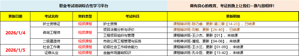 职业考试培训综合性学习平台,做有良心的教育,考证路上让我们一路与您相伴!