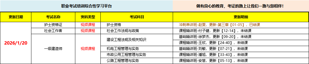 职业考试培训综合性学习平台,做有良心的教育,考证路上让我们一路与您相伴!