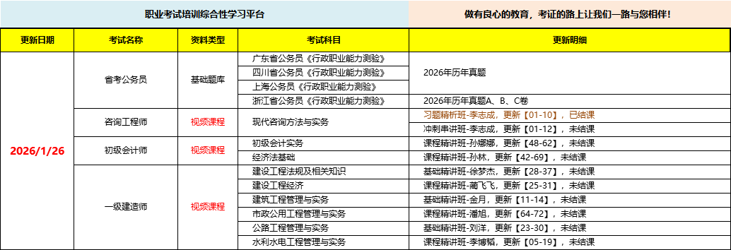 职业考试培训综合性学习平台,做有良心的教育,考证路上让我们一路与您相伴!
