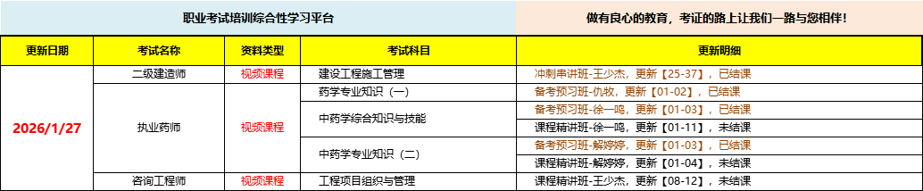 职业考试培训综合性学习平台,做有良心的教育,考证路上让我们一路与您相伴!