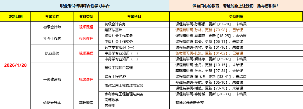 职业考试培训综合性学习平台,做有良心的教育,考证路上让我们一路与您相伴!